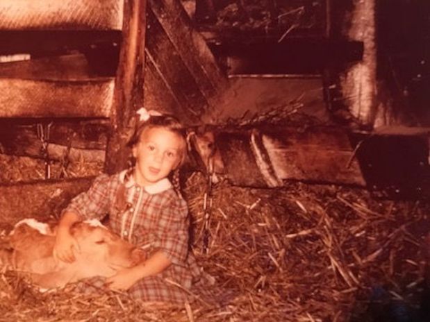 Down in the barn, the baby calf had deep straw to lay in and curl up for warmth, and the kitties made holes in the straw for beds in under the troughs. They looked so cozy I wanted such a bed myself. But I was so big next to the size of a cat! I must have tried it once in the same stall as a little calf because I believe I saw a picture that my dad took of me settled in with a calf!